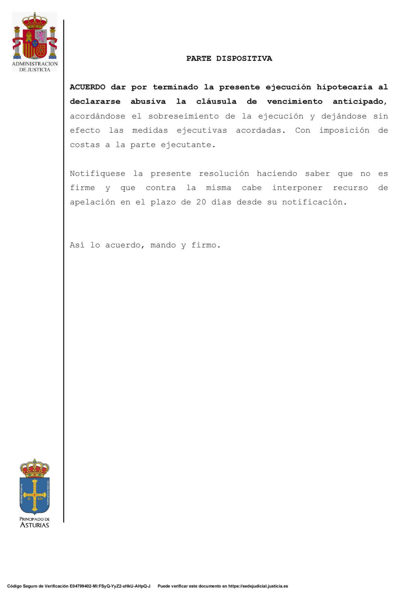 Queremos compartir con todos los clientes y usuarios de nuestras redes el final de un juicio mediante el cual hemos conseguido que a uno de nuestros clientes no le desahucien de su casa y que, además, le devuelvan unos VEINTIÚN MIL EUROS (21.000€) por por las costas judiciales.